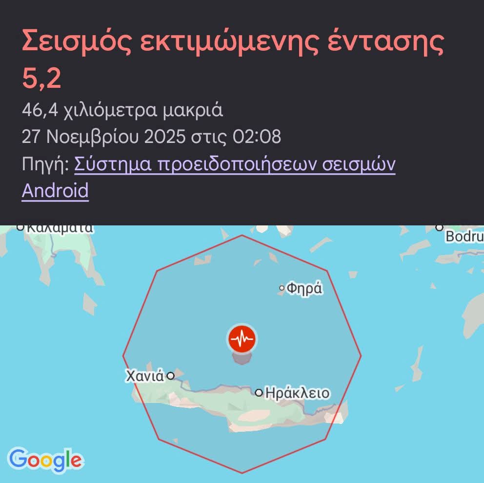 Στο κινητό τους έλαβαν προειδοποίηση σεισμού από την Google #AndroidEarthquakeAlerts