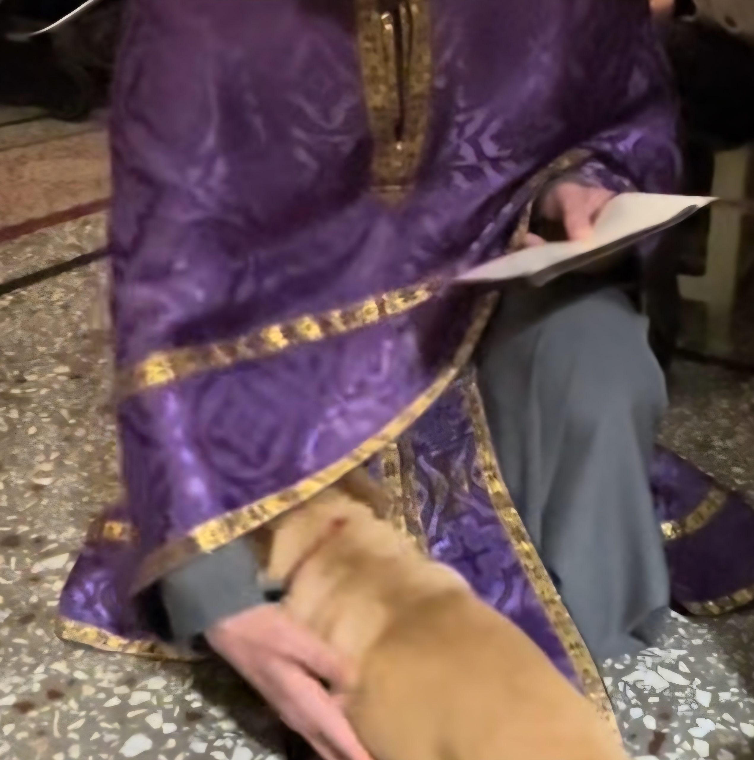 Στον Σωκαρά Ηρακλείου Κρήτης, ο πάτερ Χαράλαμπος χάιδευε ένα μικρό σκυλάκι μέσα στην εκκλησία μια στιγμή γεμάτη γαλήνη και αγάπη.