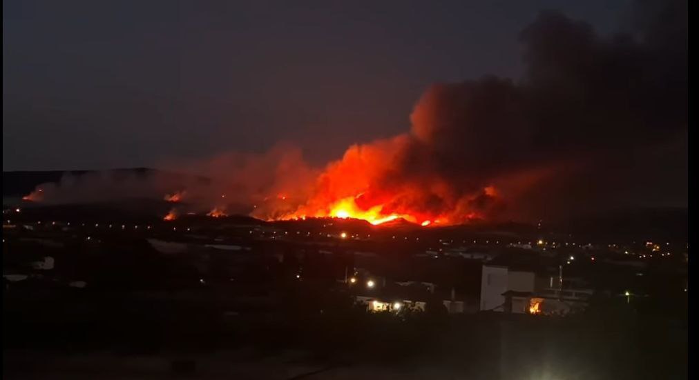 Η φωτιά φαίνεται ότι ανεβαίνει προς το βουνό. Σύμφωνα με πληροφορίες πρέπει να ξεκίνησε από σημείο κοντά στον υποσταθμό του ΔΕΔΔΗΕ.